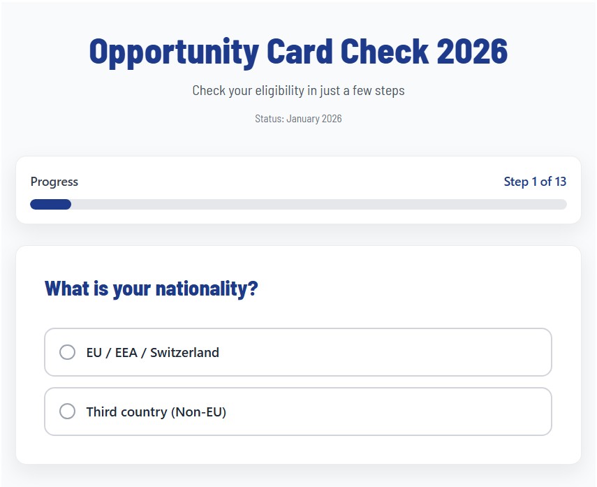 We have published a new Opportunity Card Check, which allows foreign skilled workers to quickly and easily check whether they are eligible for the Opportunity Card. The check is based on the current legal criteria and provides an initial realistic assessment without the need to submit an application or deal with bureaucratic red tape.